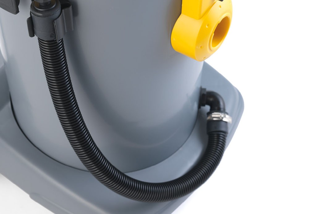 - La version PD comprend un tuyau pour évacuer les liquides du réservoir. Il dispose également d’un filtre pour l’air évacué. Avec un grand débit d’air et une puissance d’aspiration élevée, cet aspirateur possède un châssis en plastique résistant aux chocs et un porte-accessoires intégré. Des filtres en nylon, des filtres à cartouche (standard et HEPA) et des sacs en papier sont disponibles en option.
