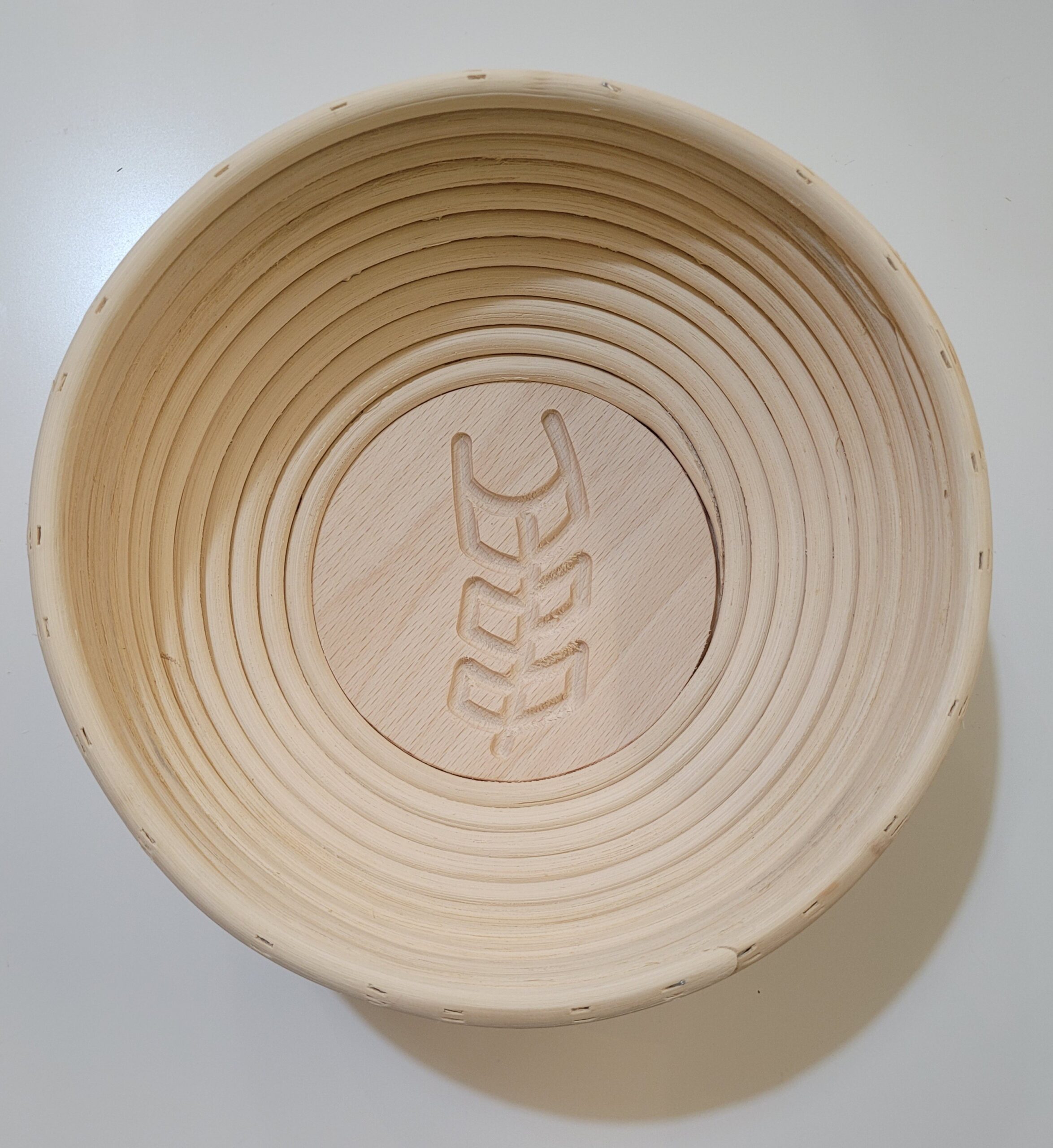 Banneton 750gr ø200xH80mm, fond en bois avec dessin au choix.