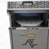 - bâti en acier inoxydable avec roulettes (équipement de série)
