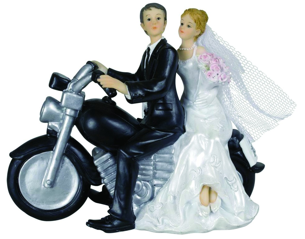 Sujet de mariage assis sur une moto 13 x 16 cm