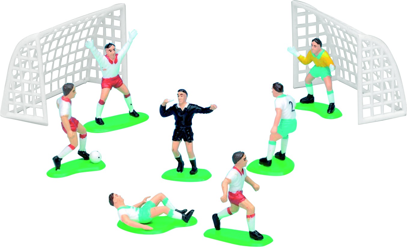Set de 6 figurines joueurs de football + 2 cages hauteur 5cm