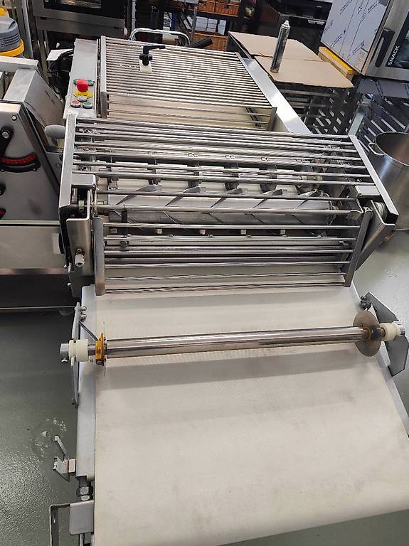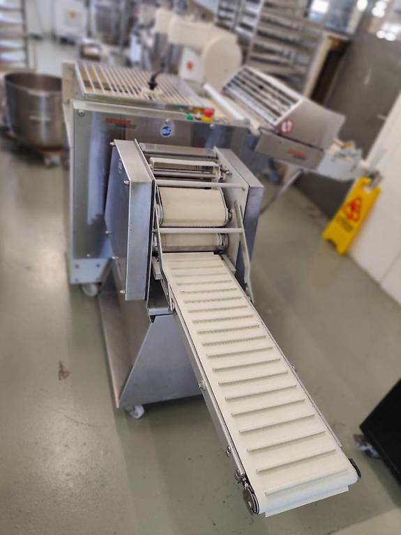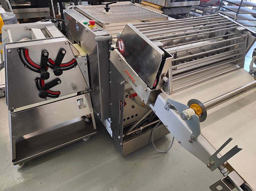 Composé d’ une ligne de découpe ( coupe les triangle pour fabriquer les croissants) et une façonneuse avec tapis de sortie pour rouler les croissants tous identiques.