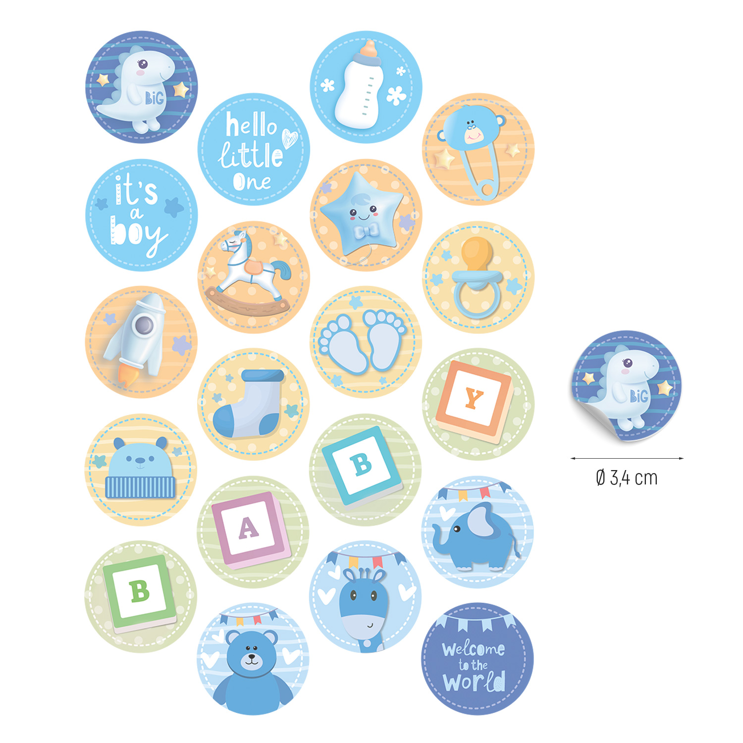 Sublimez vos cupcakes et desserts pour baby shower avec ces mini disques d’azyme comestibles de 3,4 cm, décorés de motifs doux et amusants pour célébrer l’arrivée d’un petit garçon. Ces disques incluent des illustrations adorables telles que des dinosaures, des biberons, des jouets, des animaux et des messages comme « Hello Little One » ou « Welcome to the World ».