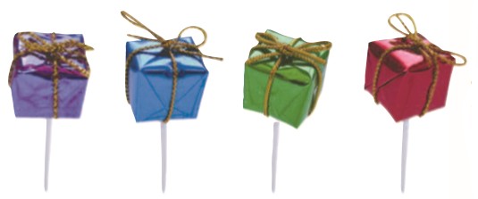 Décors à bûche: paquets cadeaux assortis, 2 x 2 cm, sur pique, boîte de 100 pièces