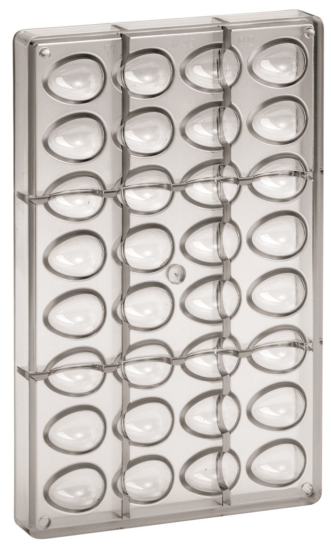 Moule en polycarbonate à haute productivité pour réaliser des œufs de Pâques parfaitement lisses et brillants.