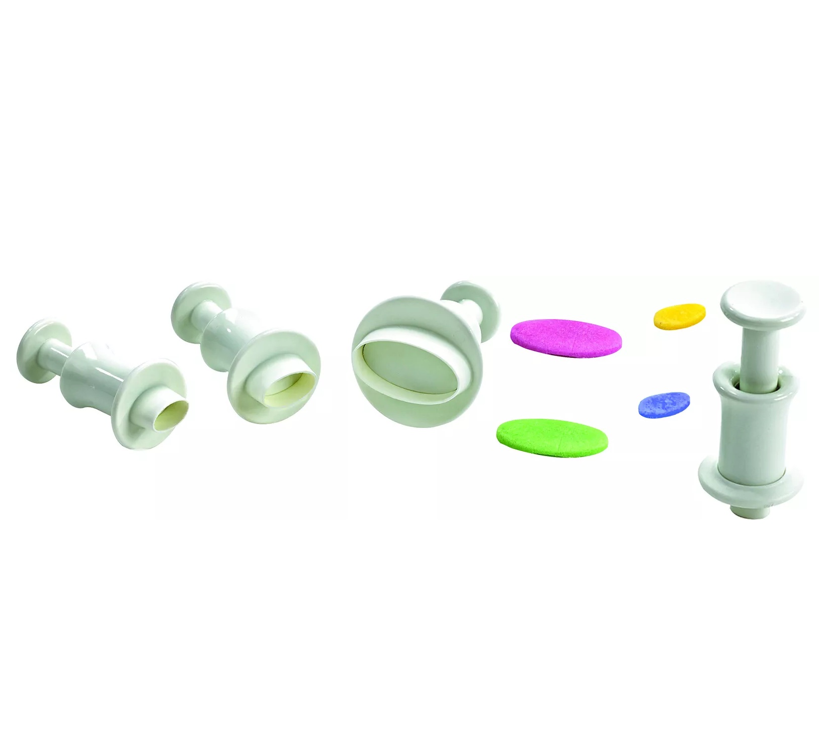 Découpoir plastique avec empreinte et poussoir, ovale. Jeu de 3