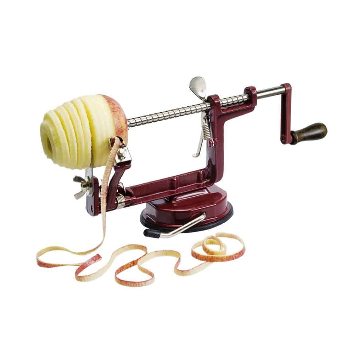 Idéal pour peler, découper en lamelles vos pommes tout en retirant le trognon pendant l’extraction de la pomme. En acier.