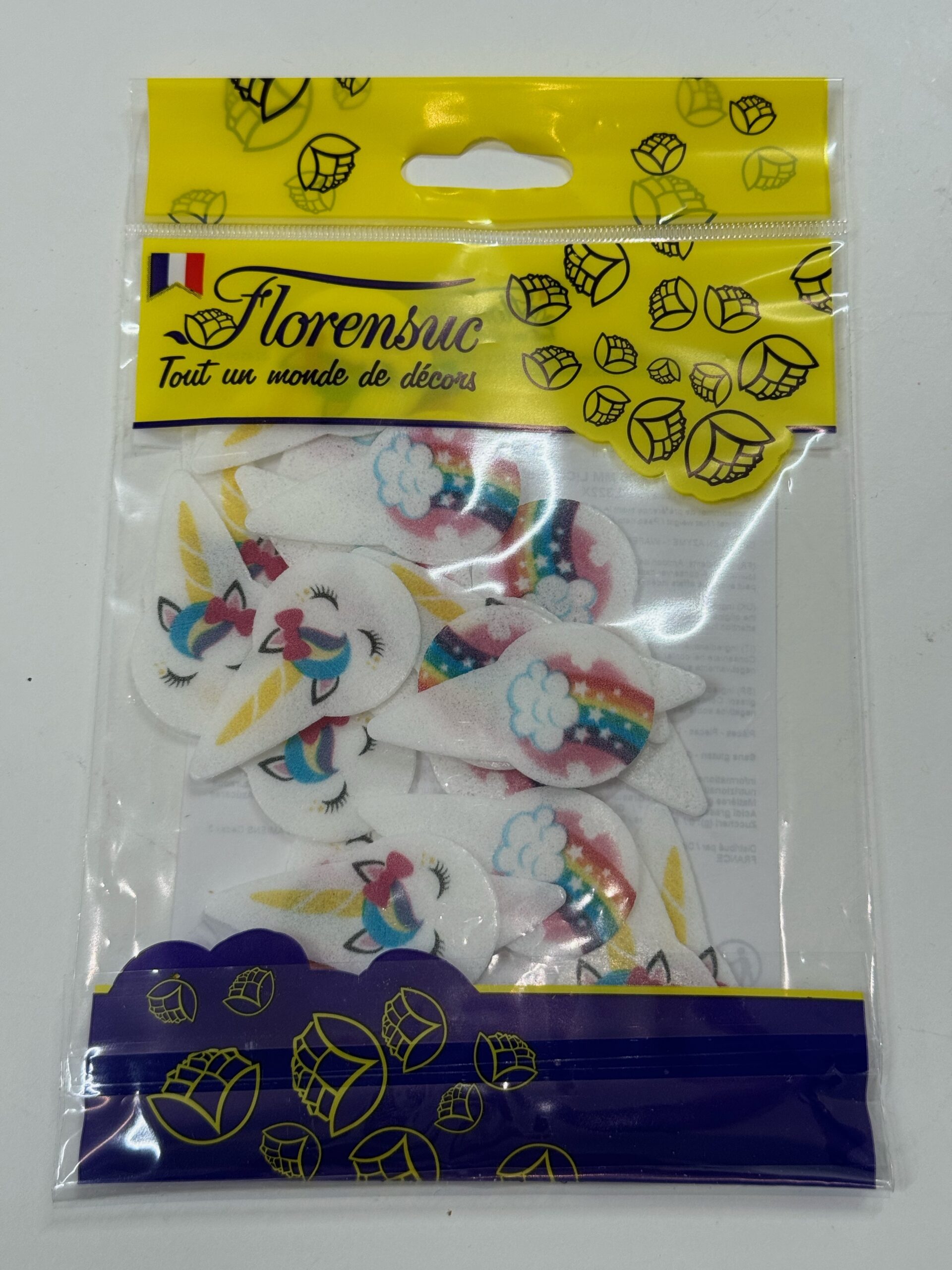 Contenu du lot : 24 piques en azyme (licornes et arcs-en-ciel assortis)