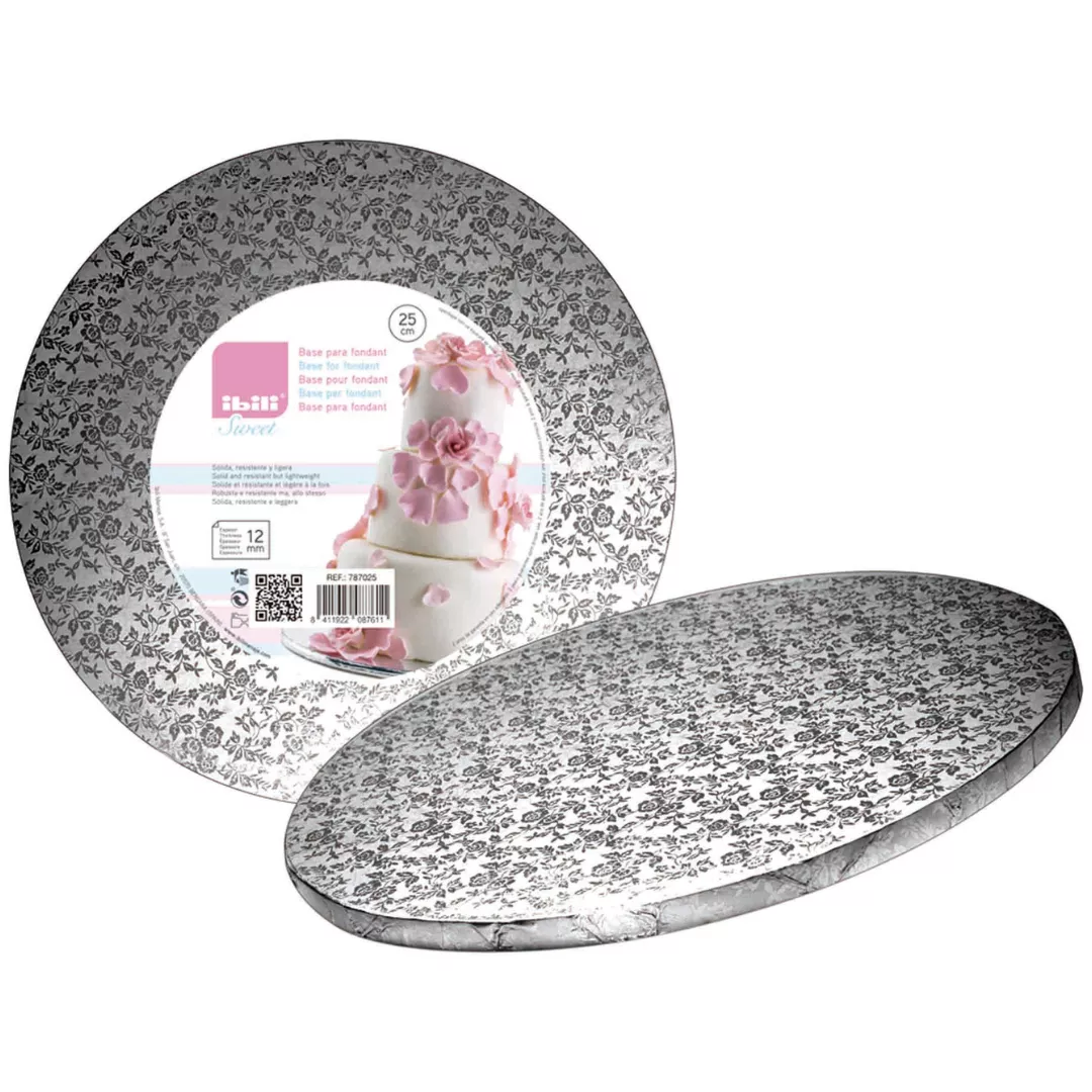 Support à gâteaux rond en carton rigide recouvert de papier aluminium, léger et résistant – Hauteur 12 mm