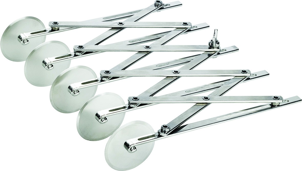 Dans l’univers exigeant de la boulangerie-pâtisserie professionnelle, la rapidité, la précision et la fiabilité sont essentielles. Le rouleau multicoupe extensible à roulettes répond à ces besoins en permettant une découpe multiple de bandes de pâte ou de feuilletage, avec des résultats réguliers et reproductibles. Équipé de lames Ø 55 mm et d’un système extensible réglable de 10 à 125 mm, il transforme une abaisse de pâte en plusieurs bandes parfaitement homogènes, en un seul geste.