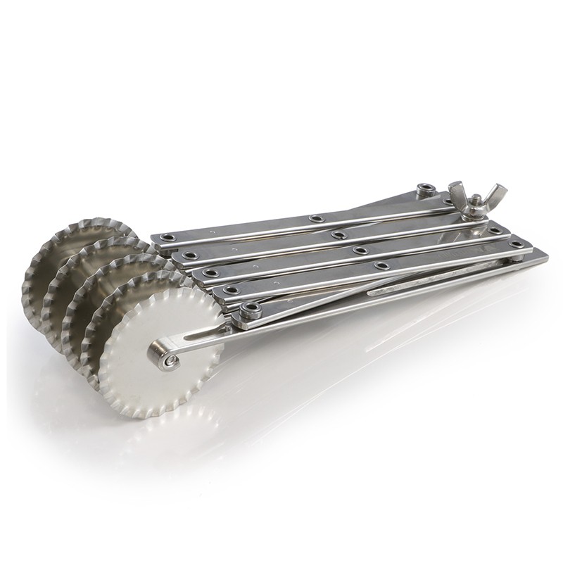 Rouleau à pâtisserie multicoupe composé de plusieurs roulettes extensibles coupe pâte.