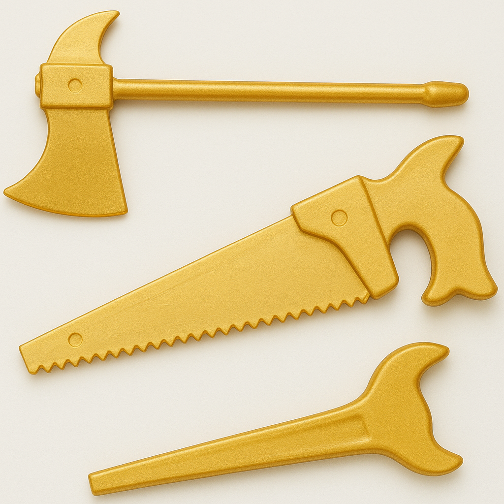 Ces petites décorations de scies et haches en or décoreront à merveille votre bûche de Noël.