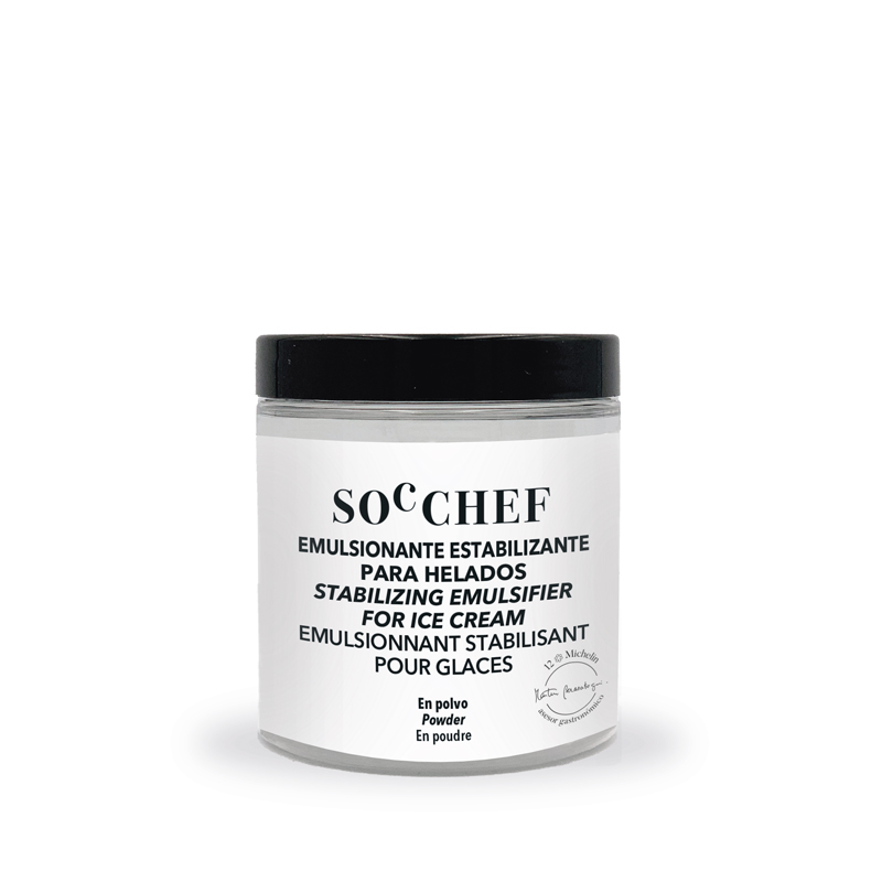 Optimisez la texture, la stabilité et le volume de vos glaces avec cet émulsifiant-stabilisant professionnel signé SOC CHEF. Formulé à base d’ingrédients d’origine végétale et lactée, il améliore l’onctuosité, réduit la cristallisation et prolonge la conservation au froid. Conditionné en pot de 120 g, il convient aussi bien aux artisans glaciers qu’aux passionnés de glaces maison souhaitant obtenir un résultat constant, fiable et professionnel à chaque préparation.