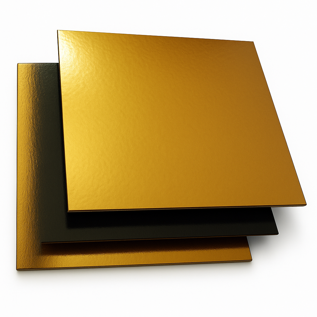 Supports / dessous de gâteaux en carton de forme carrés – Couleur or/noir